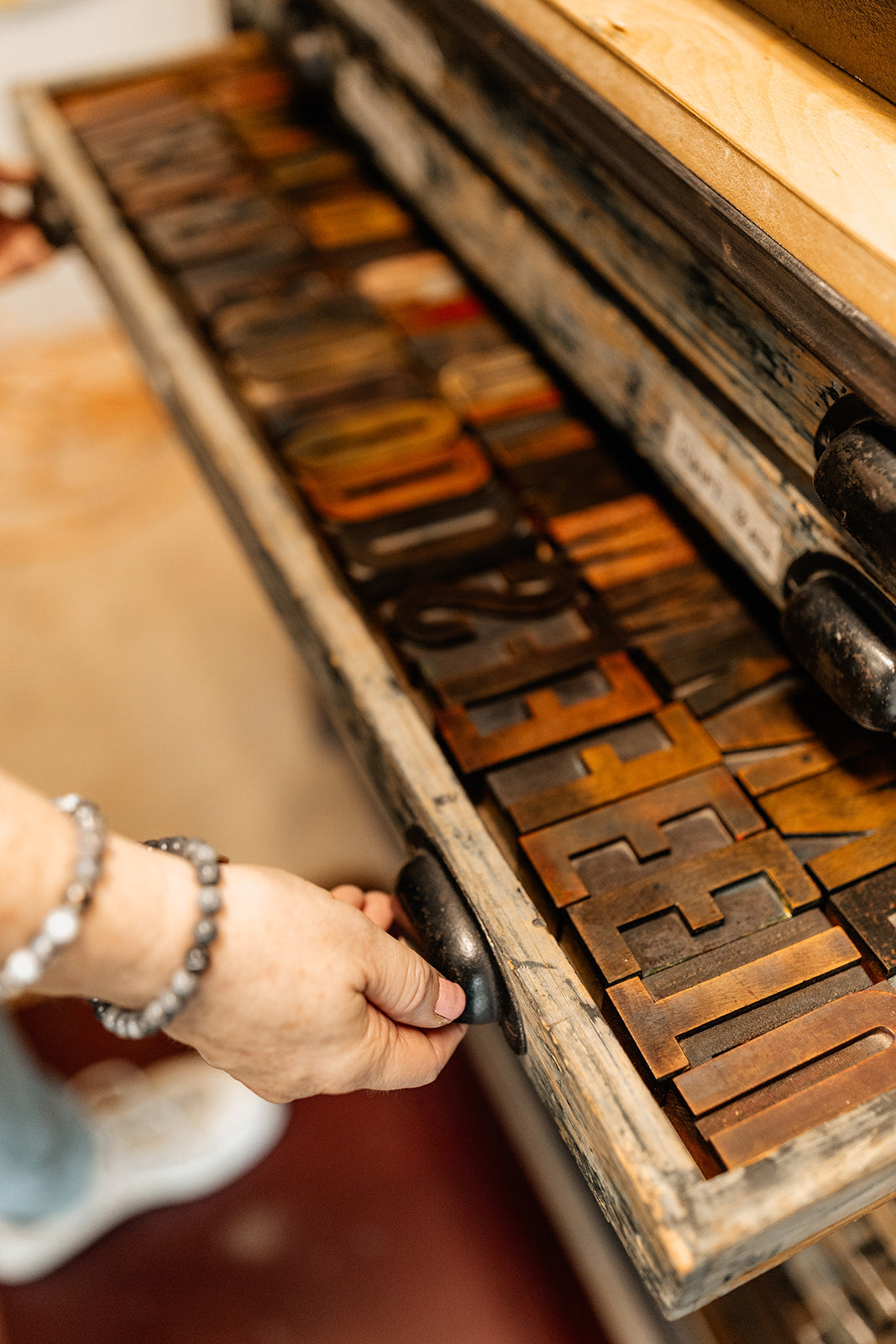 Many are typeset using vintage wood or metal type while others incorporate polymer plates from original designs.