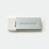 Special soft material that erases cleanly. Holder is made of durable aluminum that features a jumbo-sized version of the Blackwing eraser clip. Grey.
