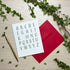 Celebrate Noel with a fun card for all your pun-loving friends. Alphabet letters in green, with “no L” (printed without ink), highlight typography and an important element of letterpress - the letters! “Happy Holidays” printed in tonal off-white and a festive red envelope complete the package.