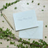- Premium Crane’s 100% cotton pale gray card stock with matching envelope.